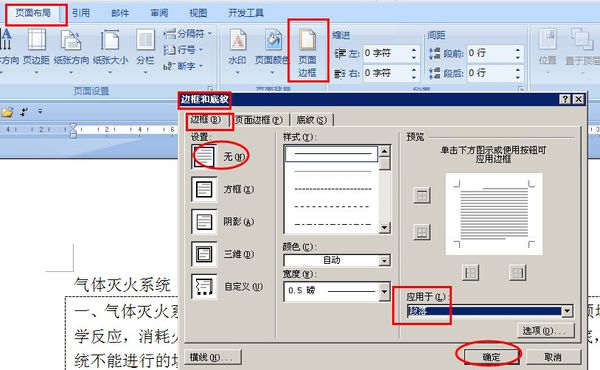 去掉段落边框:将光标移到该段落内,点击“页面布局”“边框与底纹”“边框”“无”选择应用于“段落”,确定。