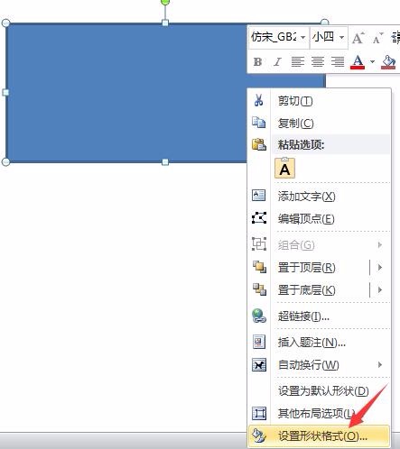 2、在文档中绘制一个矩形,然后右击该矩形,选择“设置形状格式”,如图: