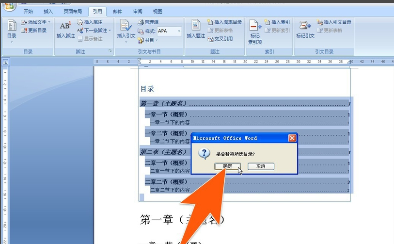 在弹出的“目录”对话框中直接左键单击“确定”。至此,所需生成的目录便生成好了。