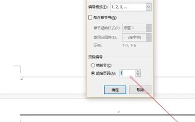 7、将页码编号设置为起始页码,并输入值1。