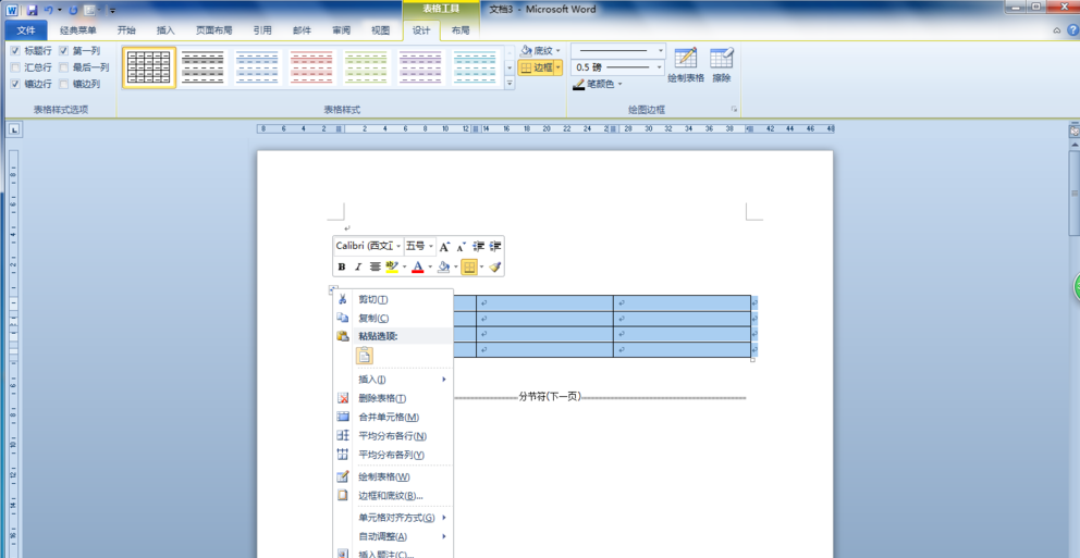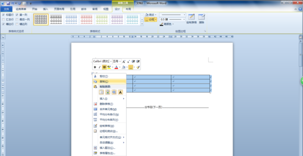 3、选中制作的小表格,右击,在弹出的快捷菜单中选择“表格属性”。