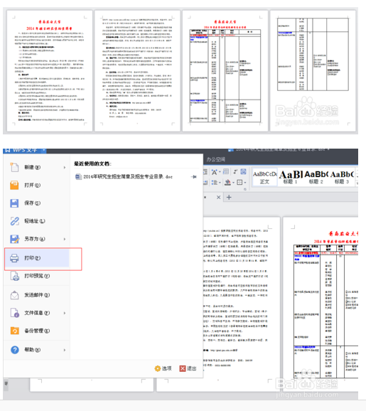1、在 Word 中打开一篇文档,点击“文件”——“打印”菜单项,准备开始打印工作。