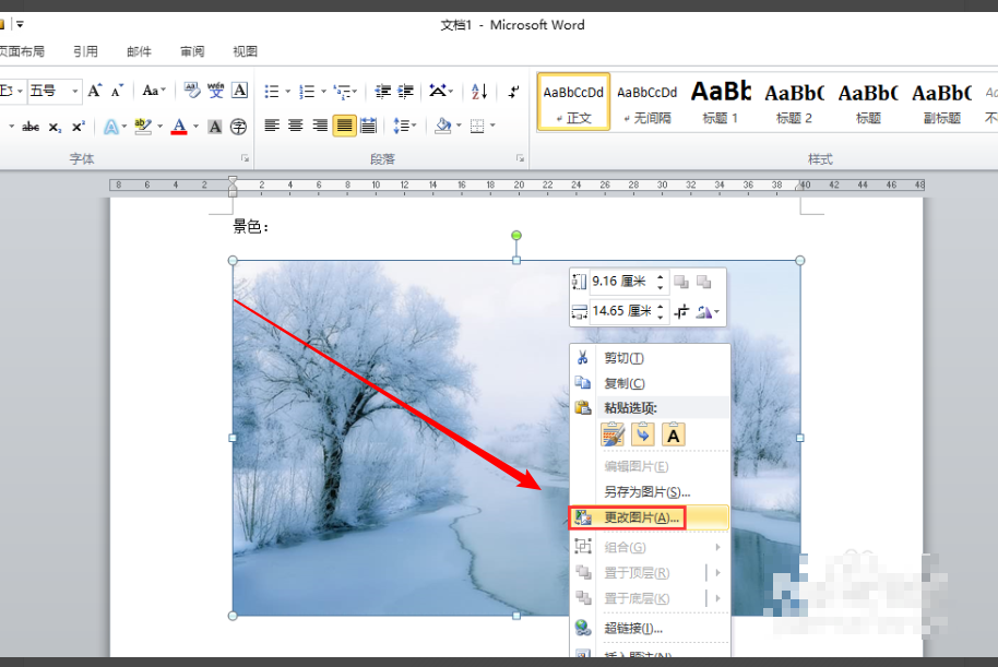 4、之后选中图片,然后单击鼠标右键,在出现的快捷菜单中选择“更换图片”并点击。