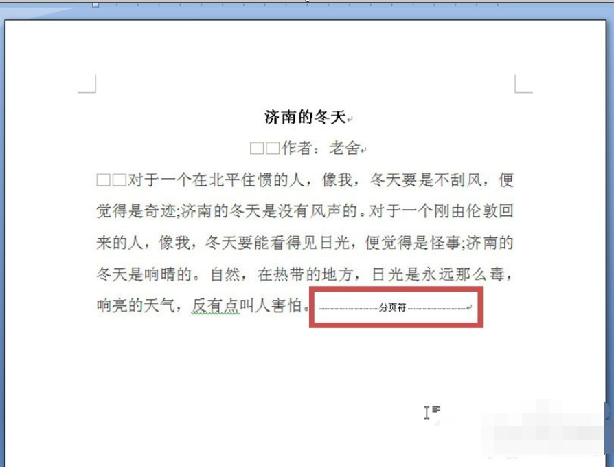6、回到文档,可见分页符已显示(图中红框)完成显示分页符的操作