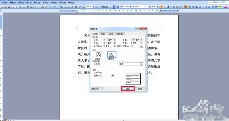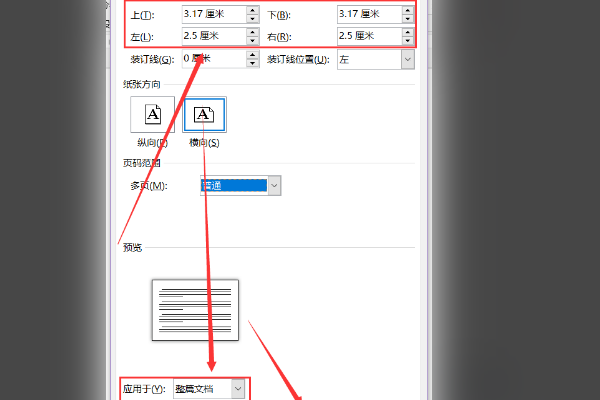 4、在“页面设置”中修改“上下左右”的边距数据,点击右下方“应用于整篇文档”。
