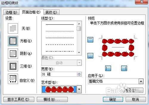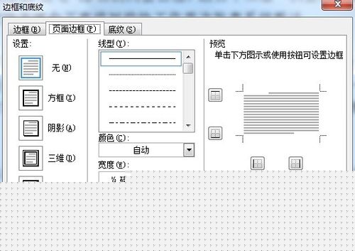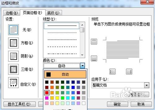 4、可以对页面边框的类型,线条类型,颜色,线条宽度等进行设置。