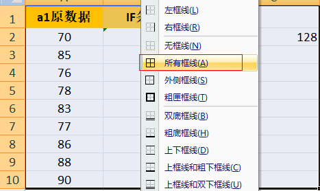 4)如下图,表格已添加边框,也可根据自助机需要的样式,选择不同的框线。