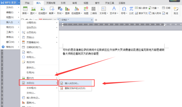 打开一篇文档,然后在菜单栏中选择格式—背景—水印。然后弹出水印对话框然后选择文字水印