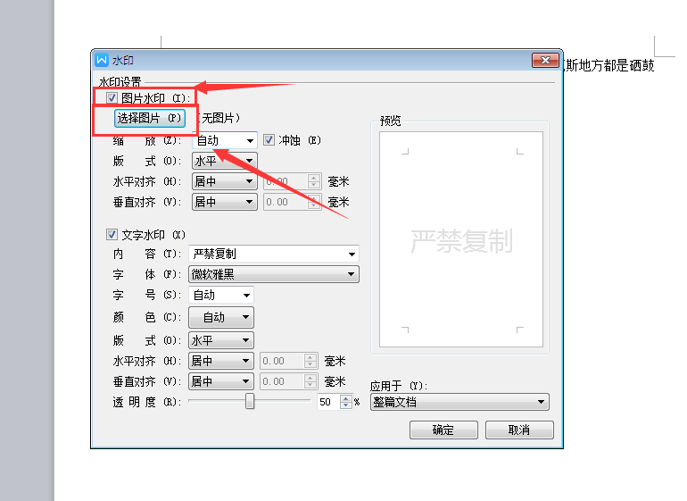 在水印对话框中选择 图片水印—选择图片
