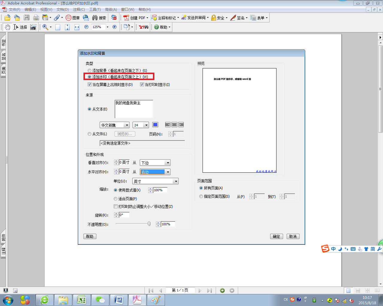 怎么给PDF加水印,或者给word加?