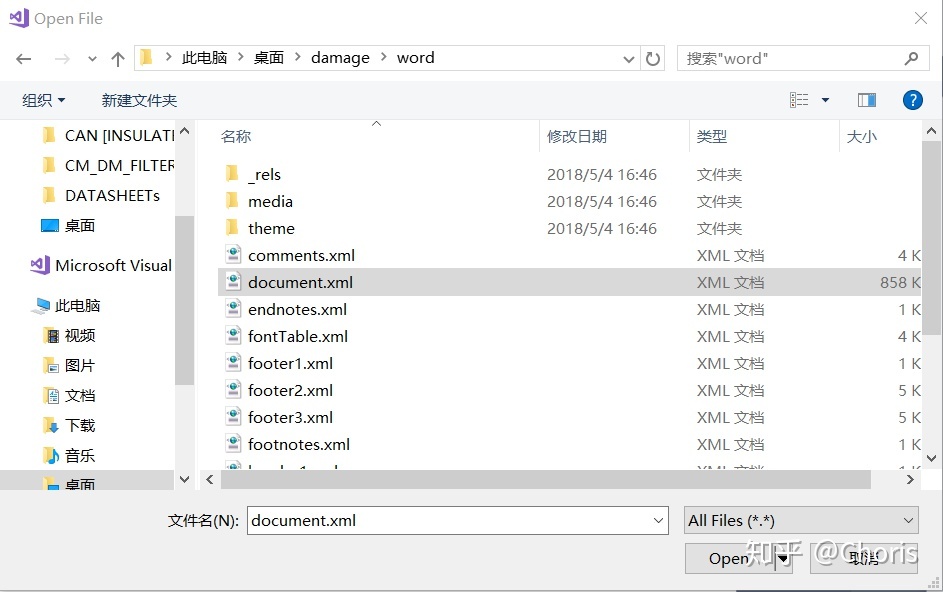 一,将word文件拆解打开成文件夹,并用VISUAL STUDIO打开。