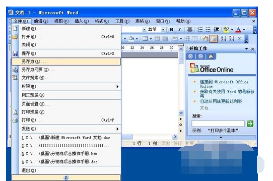 打开Word文档,依次在菜单栏单击【文件】——【另存为】
