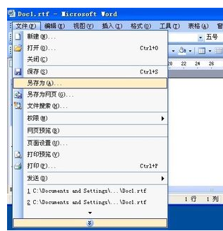 打开转换好的RTF文件,接着同样再单击【文件】菜单中的【另存为】命令