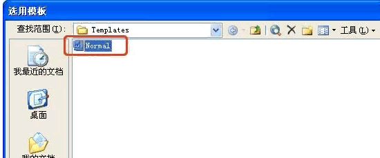 ④在Templates文件夹中,单击“Normal”(Normal.dot),然后单击“打开”;