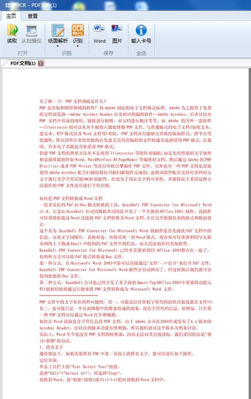 下载OCR软件试试,如紫光OCR、汉王OCR等也是不错的。