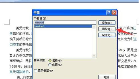 2、单击要删除的书签名,然后单击“删除”按钮。