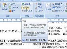 签主要用于帮助用户在Word长文档中快速定位至特定位置,或者引用同一文档(也可以是不同文档)中的特定文字。在Word2010文档中,文本、段落、图形图片、标题等都可以添加书签,具体操作步骤如下所述:
