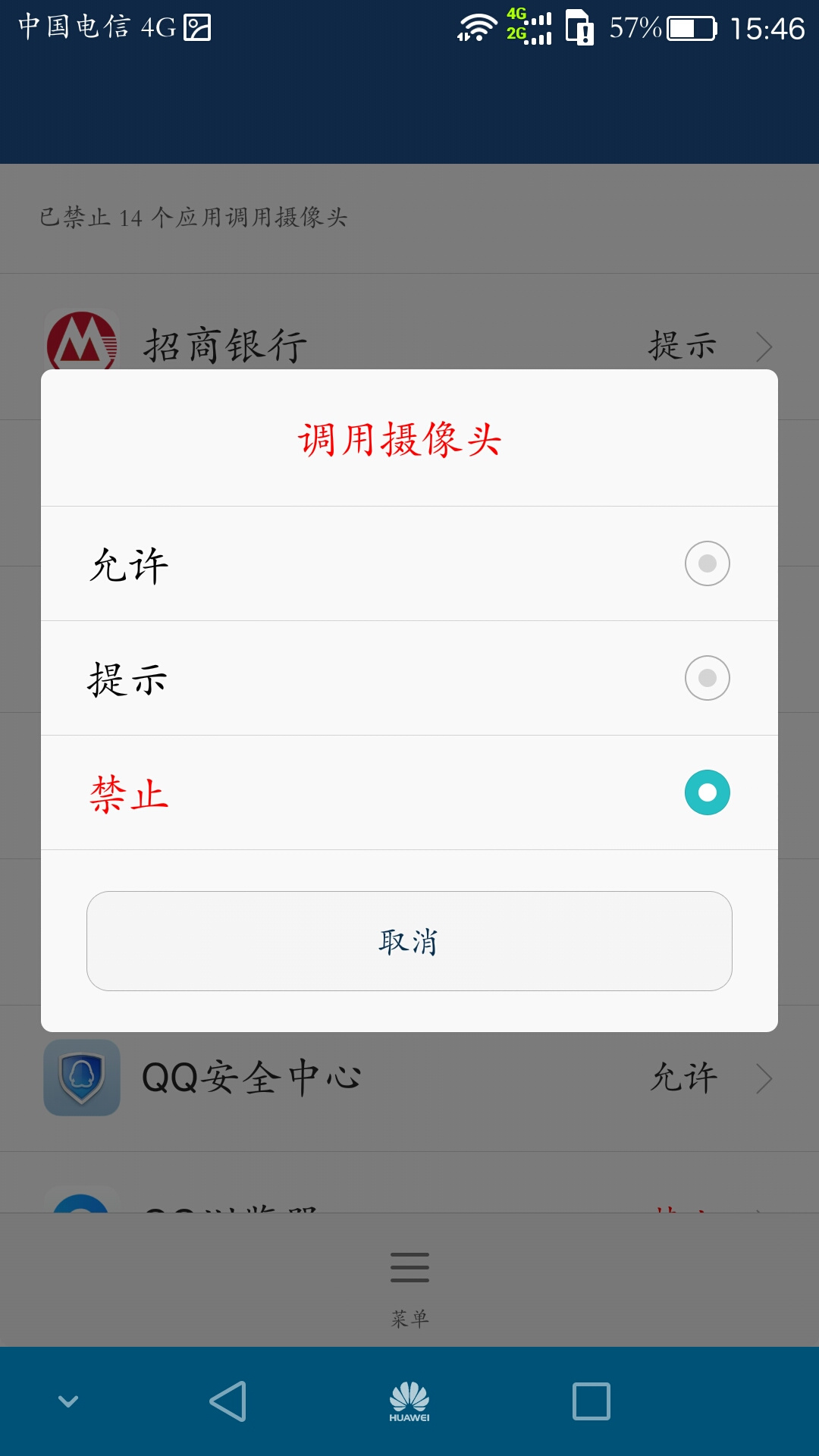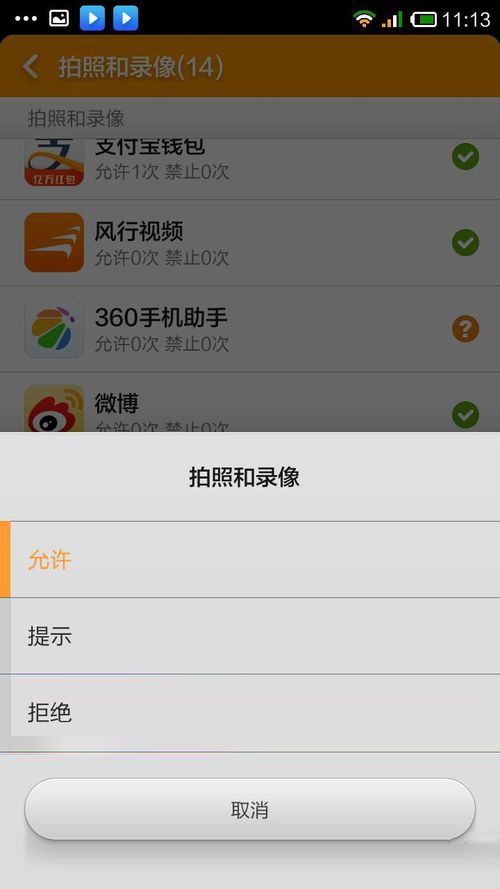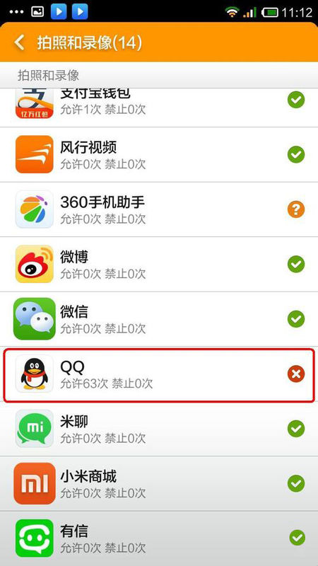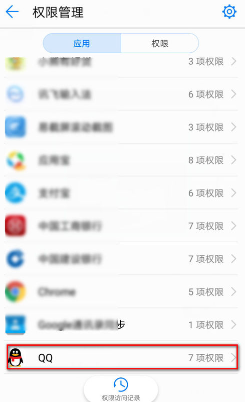 手机应用授权管理中打开qq的拍照录像权限