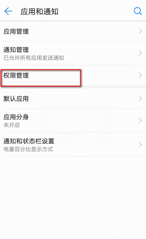 2、然后,在应用和通知的界面点击权限管理的选项。