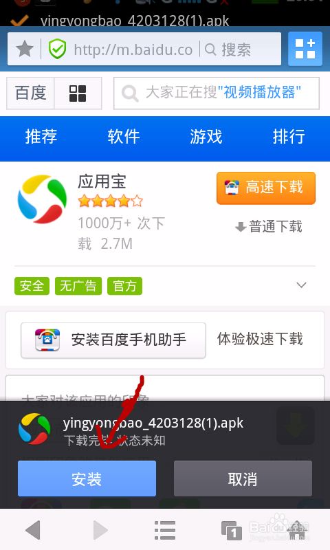 还有自带的浏览器里面也可以下载官网的应用宝。