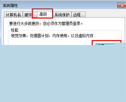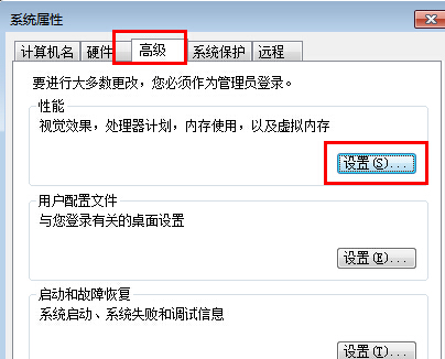 5,选择“高级”,再选择性能栏里的“设置”,如图2所示: