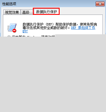 6,选择“数据执行保护”,选择“为除下列选定程序之外的所有程序和服务启用DEP(U)”,再点击下方的“添加”从硬盘中选中该程序即可。如图3所示