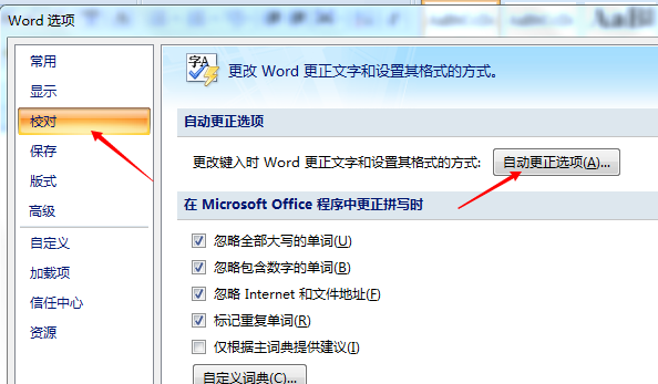 2007以上版:在选项——校对——自动更正选项,设置同上。