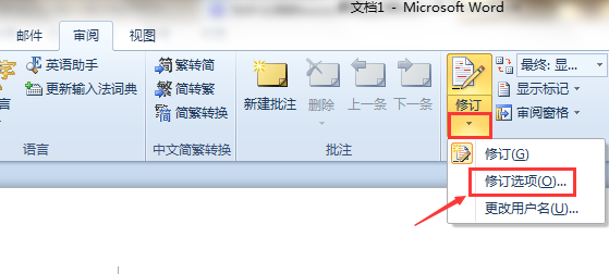 1、切换到“审阅”页面,点击“修订”下的【修订选项】。
