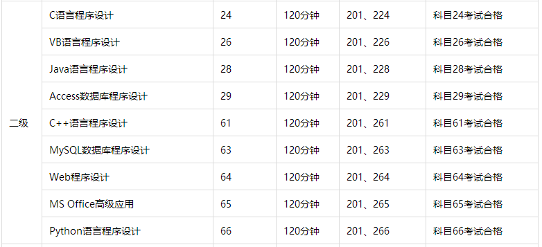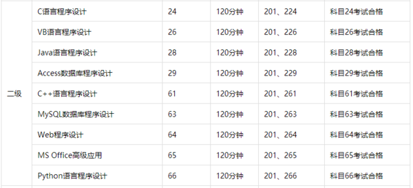 二级:程序设计/办公软件高级应用级。考核内容包括计算机语言与基础程序设计能力,要求参试者掌握一门计算机语言,可选类别有高级语言程序设计类、数据库程序设计类等;二级还包括办公软件高级应用能力,要求参试者具有计算机应用知识及MS Office办公软件的高级应用能力,能够在实际办公环境中开展具体应用。