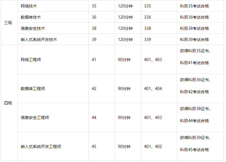 四级:工程师级。四级证书面向已持有三级相关证书的考生,考核计算机专业课程,是面向应用、面向职业的工程师岗位证书。