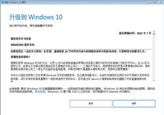 1.下载打开官方升级win10创意者更新的工具易升,点击接受微软软件许可条款。