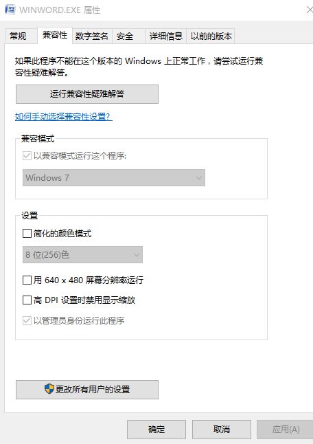 找到word.exe和excel.exe文件(注意这里不是自己建的文件),右键-属性-兼容性把以兼容模式运行和以管理员身份运行打上勾,就能运行了
