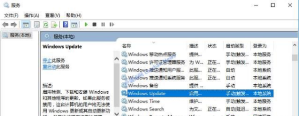 2、在开始菜单右侧的搜索框中输入关键词服务, 打开后寻找 Windows Update 的服务项并右键点击属性。