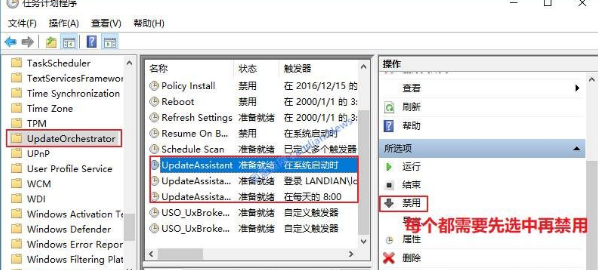 4、在开始菜单右侧的搜索框中输入关键词任务计划程序, 找到后点击任务计划程序即可看到所有的任务项。此处路径为:任务计划程序库---Microsoft---Windows---UpdateOrchestrator