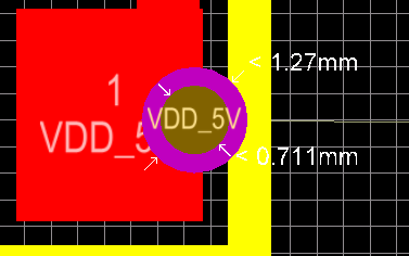 2.移动到需要放置过孔的线端或是焊盘端,放置就会自动形成网络信号,如图: