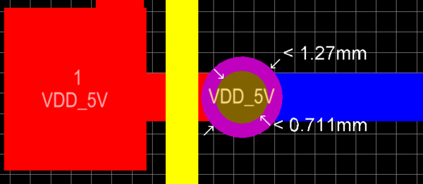 3.移动有网络的过孔放在合适的位置,就可以连线了,如图: