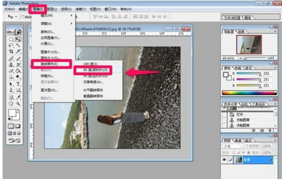 2、现在首先旋转画布,可以点击图像菜单-旋转画布,然后对图片进行合适的旋转即可。