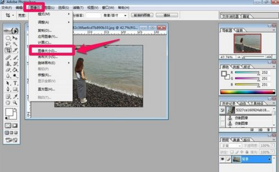 4、裁剪以后可以根据需要然后把图片尺寸调整到需要的大小,可以点击图像菜单-图像大小,输入图片的宽度和高度进行调整,这样图片就处理完成了。