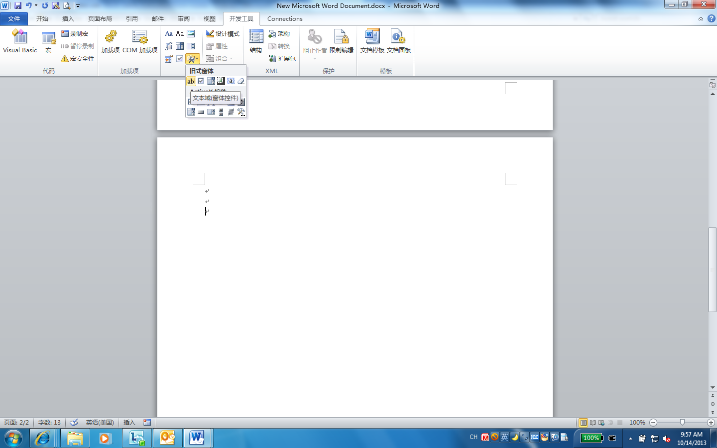 word2010 如何插入 窗体域