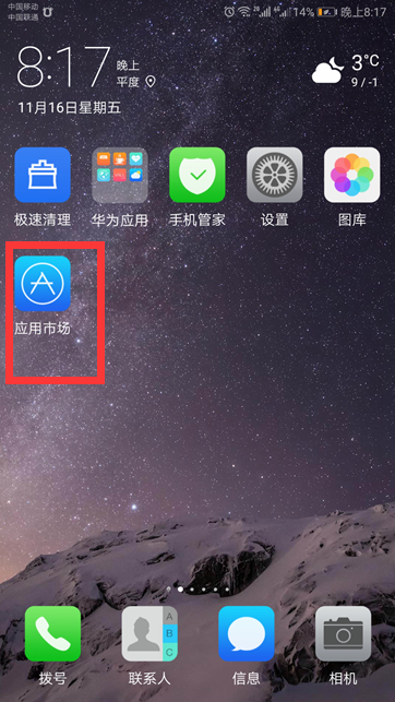 1、打开手机界面,找到“应用市场”图标