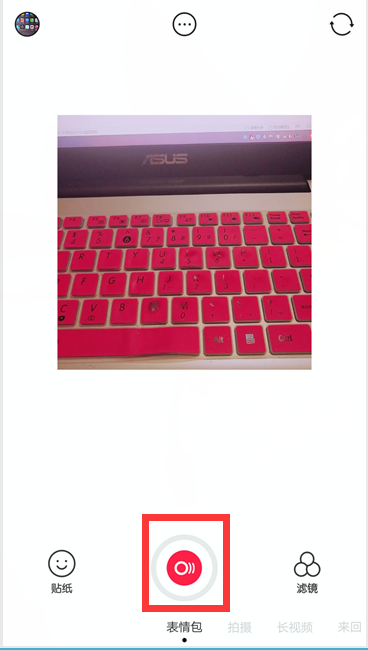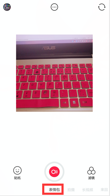 4、打开这个b612咔叽软件,切换到“表情包”选项