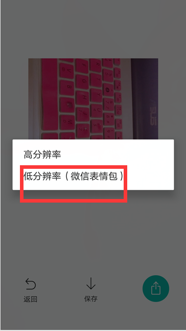 7、弹出的菜单中,选择“低分辨率(微信表情包)”选项