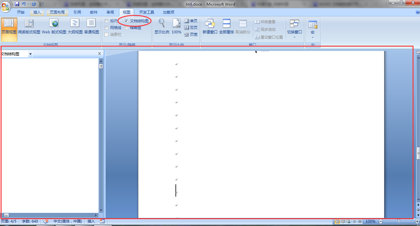 显示文档的打印外观,可以“所见即所得”的进行设计,输入输出。但是页面视图不总是完全正确的,为了得到正确的打印视图,请转到【Office|打印|打印预览】(快捷键是【Ctrl+F2】)