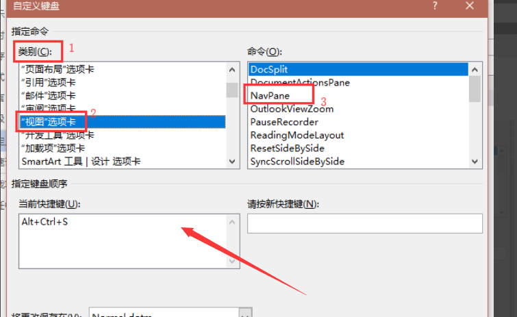 5、然后会在下方出现“当前快捷键”和“请按新快捷键”,然后在“请按新快捷键”下面的输入框输入要设置的快捷键即可。