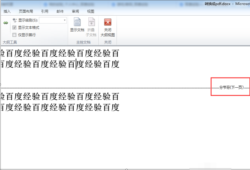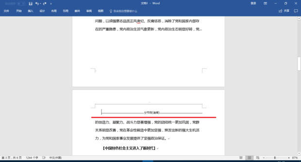 现在分节符显示出来了