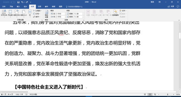 如图,这是一段话,现在没有分节符