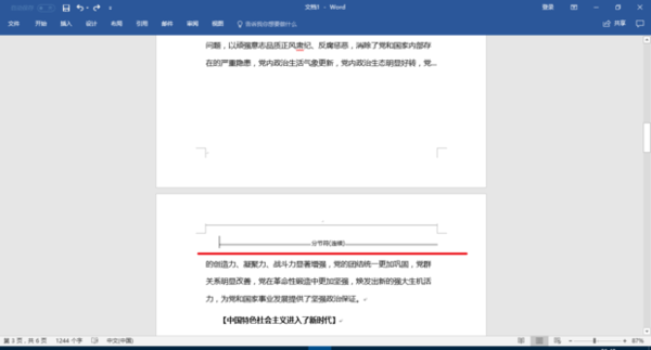 4、然后我们就可以看到分节符了。