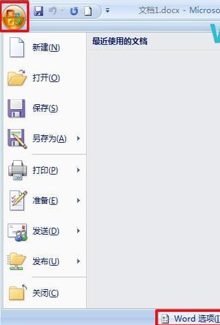 当前文档中的度量单位是字符。单击【office】按钮,在弹出的下拉列表中单击【Word选项】。