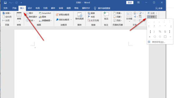 2、新建一张文档,点击最上方菜单栏上的插入按钮,在下拉工具列表中选择符号。