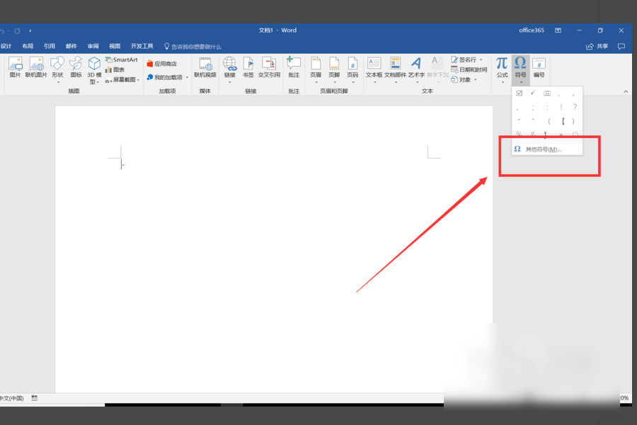 3、接着,在符号的下拉菜单中,点击其他符号选项。